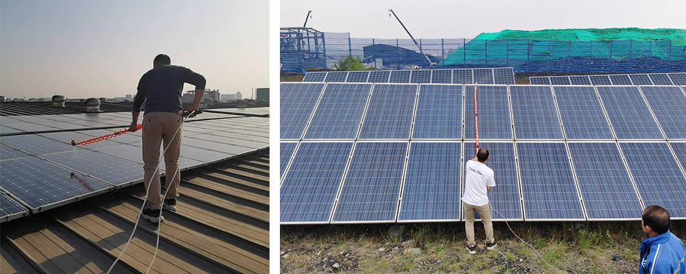 使用本公司生产的配套专用便携式喷涂设备于光伏电站现场施工。